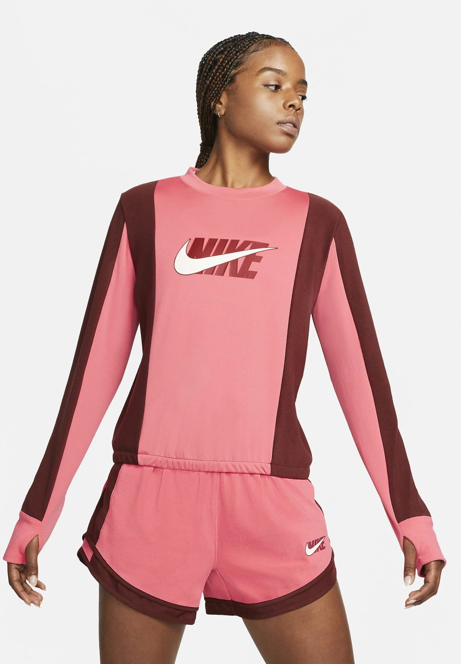 Nike Performance Running Midlayer Dri Fit Icon Clash – Camiseta De Manga Larga – Archaeo Pink Bronze Eclipse Cedar Sail